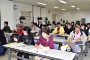 12月2日(木)、1年10ヶ月ぶりにくらしのサロンを共栄コミセンで行いました。参加者は一般の方も含め28名。2年前に大変好評だったテーマの続編です。内容は裁判制度、相続放棄、交通事故などに関し、弁護士が実際に相談を受けている立場から具体的事例を交え、分かりやすい言葉で説明がありました。多くの方が最後まで頷きながら熱心にメモを取っている姿が印象的でした。具体的な質問もあり、アンケート結果からも参加者の満足した様子が窺えました。改めて、法律は私達の日常生活に大いに関わっていることを実感し、法律を理解することの重要性を認識する機会となりました。 |